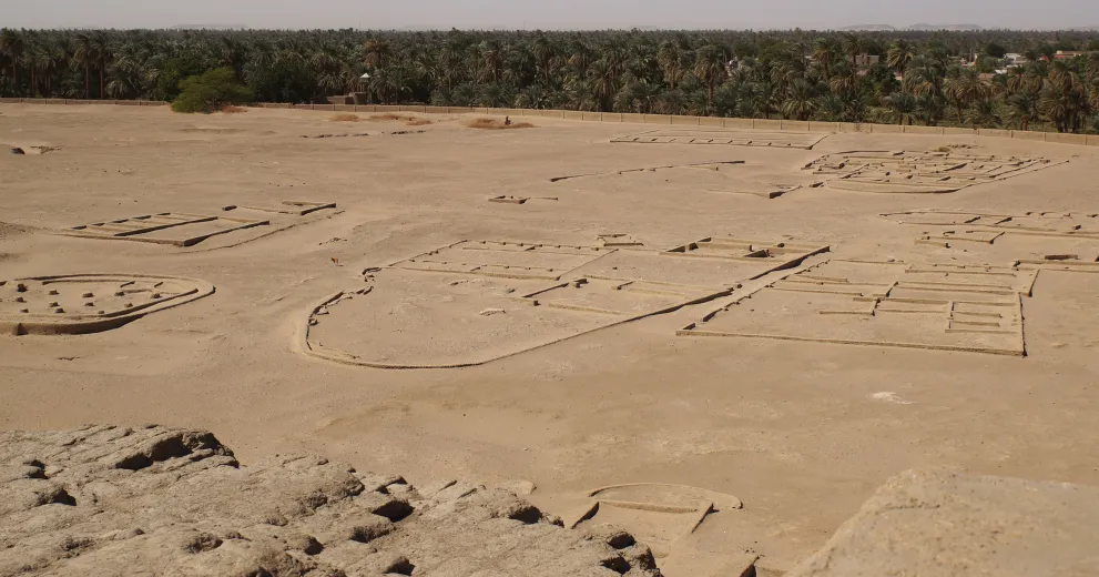 While recent research has discovered earlier Mesolithic and Neolithic remains, including a so-called urban agglomeration, the origins of the city of Kerma date back to about 2500 BC. They comprise palace-like structures, elite houses as well as specialised workshops and a fortified city wall. The centre of the site is marked by the so-called Western Deffufa, a monumental mudbrick building which seems to represent the main Kerma temple.
