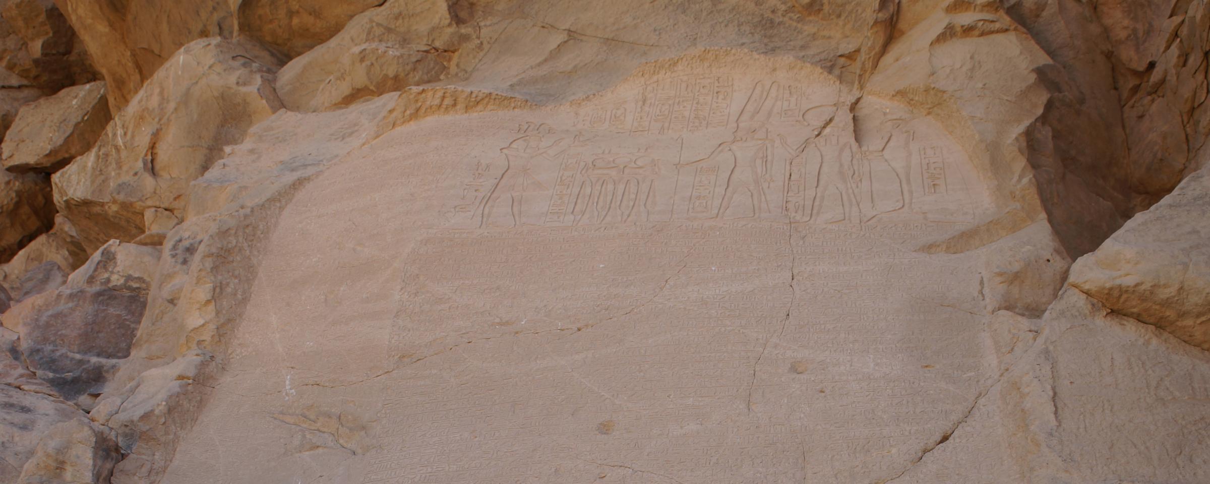 Explore the rocky landscape of the Third Cataract with the great victory stela of Thutmose I as well as a range of other New Kingdom rock inscriptions relating to the conquest of Kerma by the Egyptians.